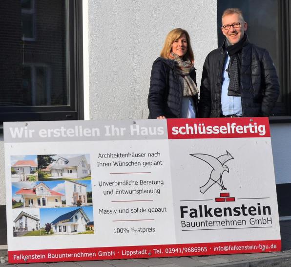 "Lippstadt. Die Tür aufschließen und sich wohlfühlen – wer mit der „Falkenstein Bauunternehmen GmbH” sein Eigenheim verwirklicht, muss nicht länger von seinem Traumhaus träumen, sondern kann endlich ankommen in seinem neuen Lebensmittelpunkt. „Nach 35 Jahren Erfahrung in den Bereichen Neubau und Sanierung wissen wir, worauf es beim Bauen ankommt. Unsere Kunden erhalten die Bauausführung von der Planung über die Einrichtung der Baustelle bis zum schlüsselfertigen Gebäude“, unterstreichen Claudia Falkenstein und ihr Mann Thomas Rowlin, die zusammen die Geschäftsführung des Unternehmens innehaben. Vor zehn Jahren – am 25. Januar 2007 – wurde das Bauunternehmen in Lippstadt gegründet. „Wir sind zu zweit angefangen, mittlerweile sind wir neun Leute“, betont Maurermeister Thomas Rowlin. Fünf Maurergesellen und zwei Auszubildende werden in dem Betrieb beschäftigt. „Wir sind wirklich aus dem Handwerk und bauen die Häuser selbst; bei den verschiedenen Gewerken werden wir von langjährigen und zuverlässigen Kooperationspartnern unterstützt“, so der Geschäftsführer.