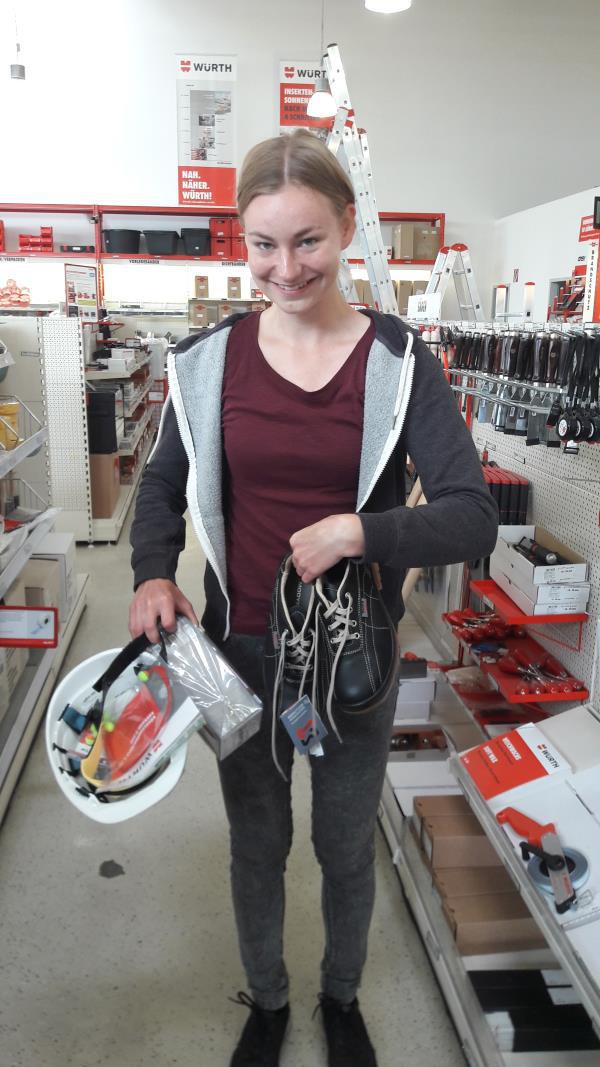 Am ersten Arbeitstag nahm Theresa an einer Gesundheits- und Arbeitssicherheitsschulung teil. Anschließend wurde die persönliche Schutzausrüstung (PSA) eingekauft und angepasst.